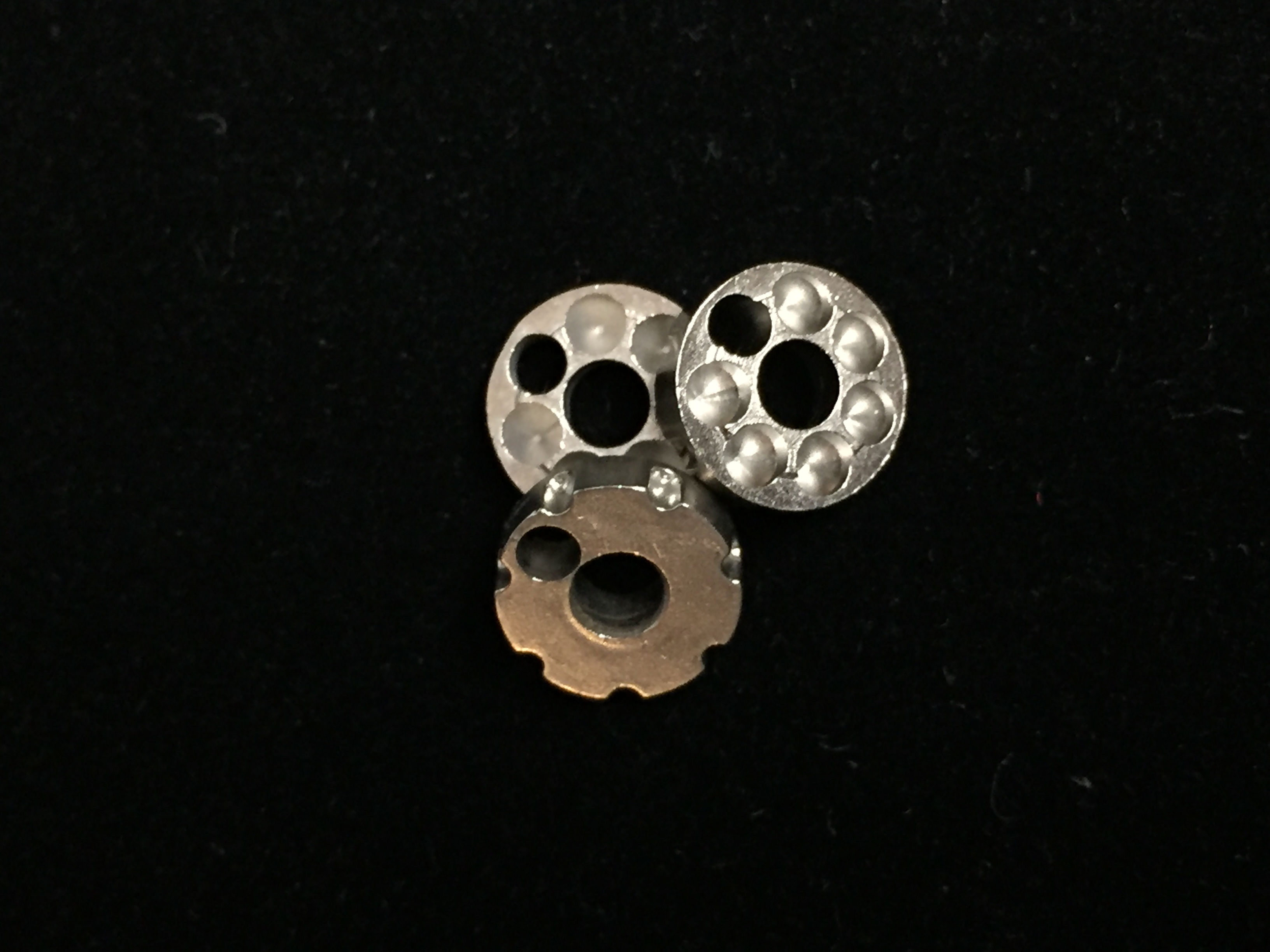 This is the Inner cylinder for the Xythos 2mm Pinfire revolver. These are made by us, here at Pinfire Guns USA, and will fit both the Xythos revolvers that were made in Austria, and of course our Xythos-style revolvers. It is nickel-plated.